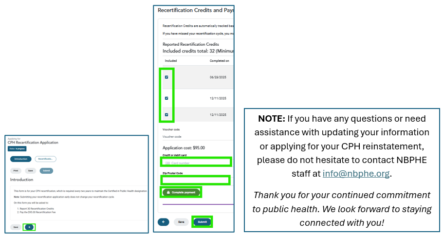 Below are instructions on how to update your contact information and submit your CPH Reinstatement Application: